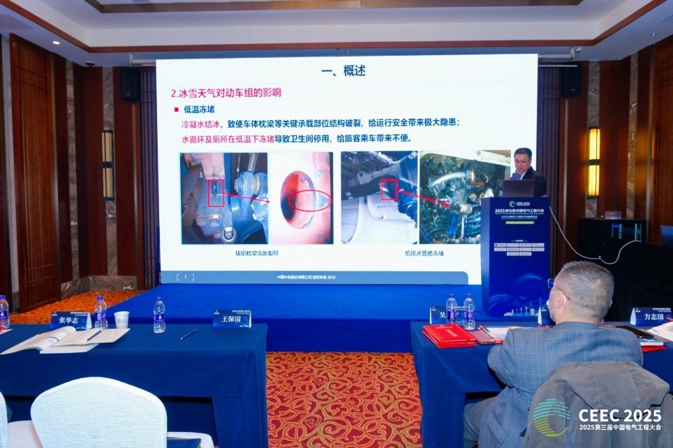 中车长春轨道客车股份有限公司电气开发部韩伟副部长作了《国内外铁路应对冰雪灾害技术的研究进展》报告。报告指出,高寒动车组在冰雪环境下面临弓网受流、走行部冻结及密封失效等关键技术挑战,需从材料低温适应性、结构防雪密封及电气部件防护等多维度提升整车抗冰雪能力。总结了我国高寒动车组在转向架防击打、受电弓风管防护、牵引系统绝缘灌封等方面的技术改进措施,并借鉴俄罗斯丙二醇预喷洒与日本专用除冰受电弓等国际经验,提出了融合结构优化、智能监测与主动防护的整车系统防冰策略,为提升我国高寒动车组在极端冰雪条件下的运行安全性与运维适应性提供了技术支撑。